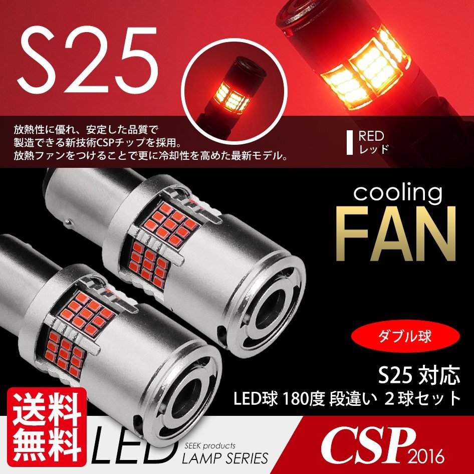 > LED S25 SEEK 54連 冷却ファン付 レッド/赤 ブレーキ / テールランプ ダブル球 段違いPIN 国内 点灯確認 検査後出荷 ネコポス 送料無料