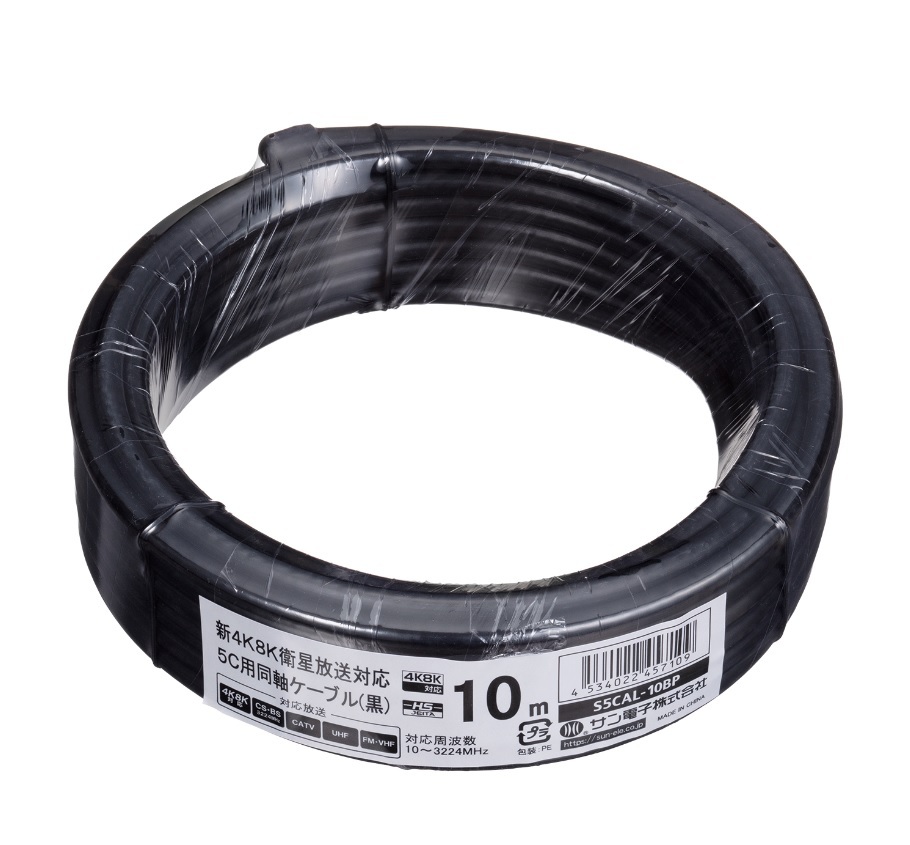 - サン電子 5C用同軸ケーブル10m 4K8K/地デジ/BSCS/CATV対応 黒