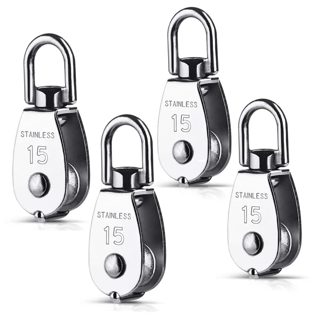 - Rhinocats 滑車 M15 ローププーリー スイベル式 ステンレス滑車 豆ブロック 耐荷重70kg 四個セット