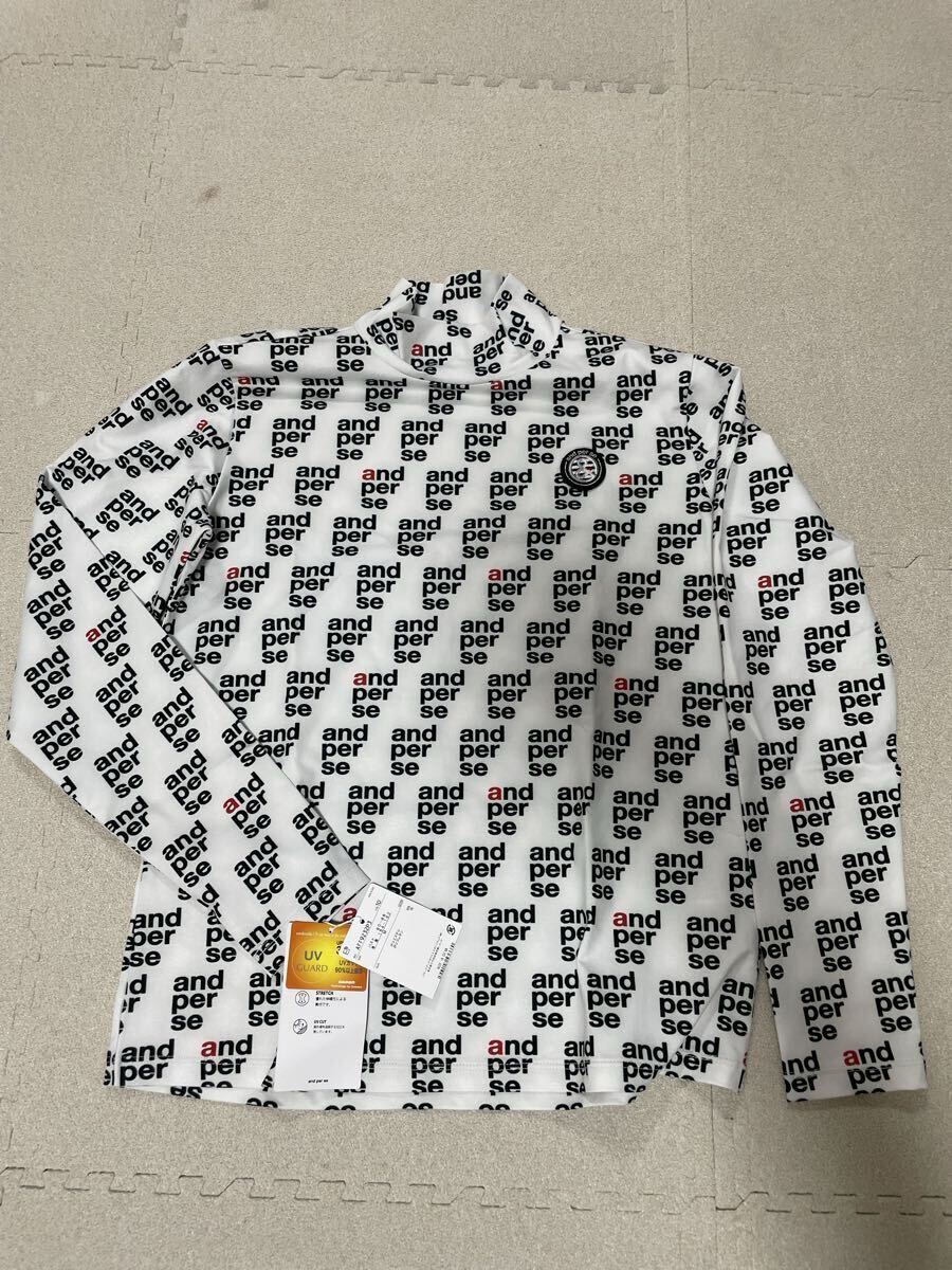 - 【新品・タグ付き】and per se アンパスィ ハイネック 長袖Tシャツ ロゴ柄 ホワイト系 ゴルフウェア レディース ストスト
