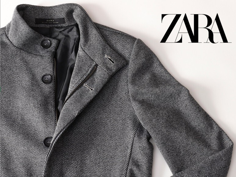 > ★中古品★ZARA ザラ★ハイネックセミロングコート★Sサイズ【0706/381】グレー灰【本物保証】綺麗めファッション★細身ジャケット