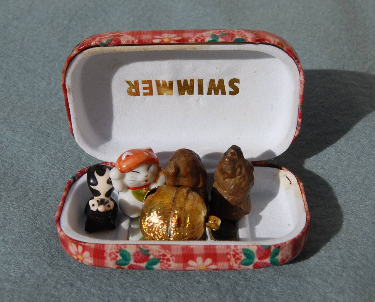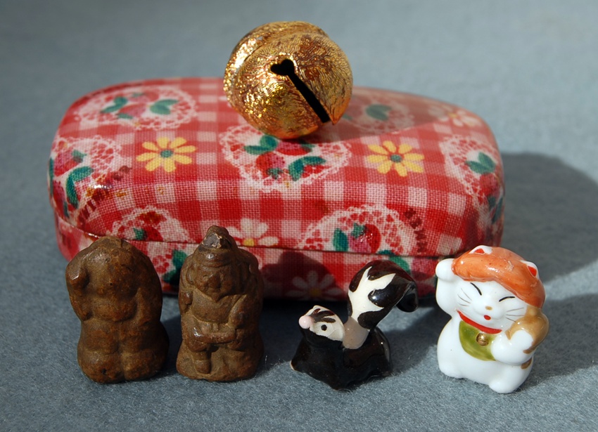 - 陶器置物 ミニチュア 4点 HAGEN-RENAKER ヘイゲンリネカー スカンク 招き猫:大黒様似 ミニ形:恵比寿/大黒様 金の鈴