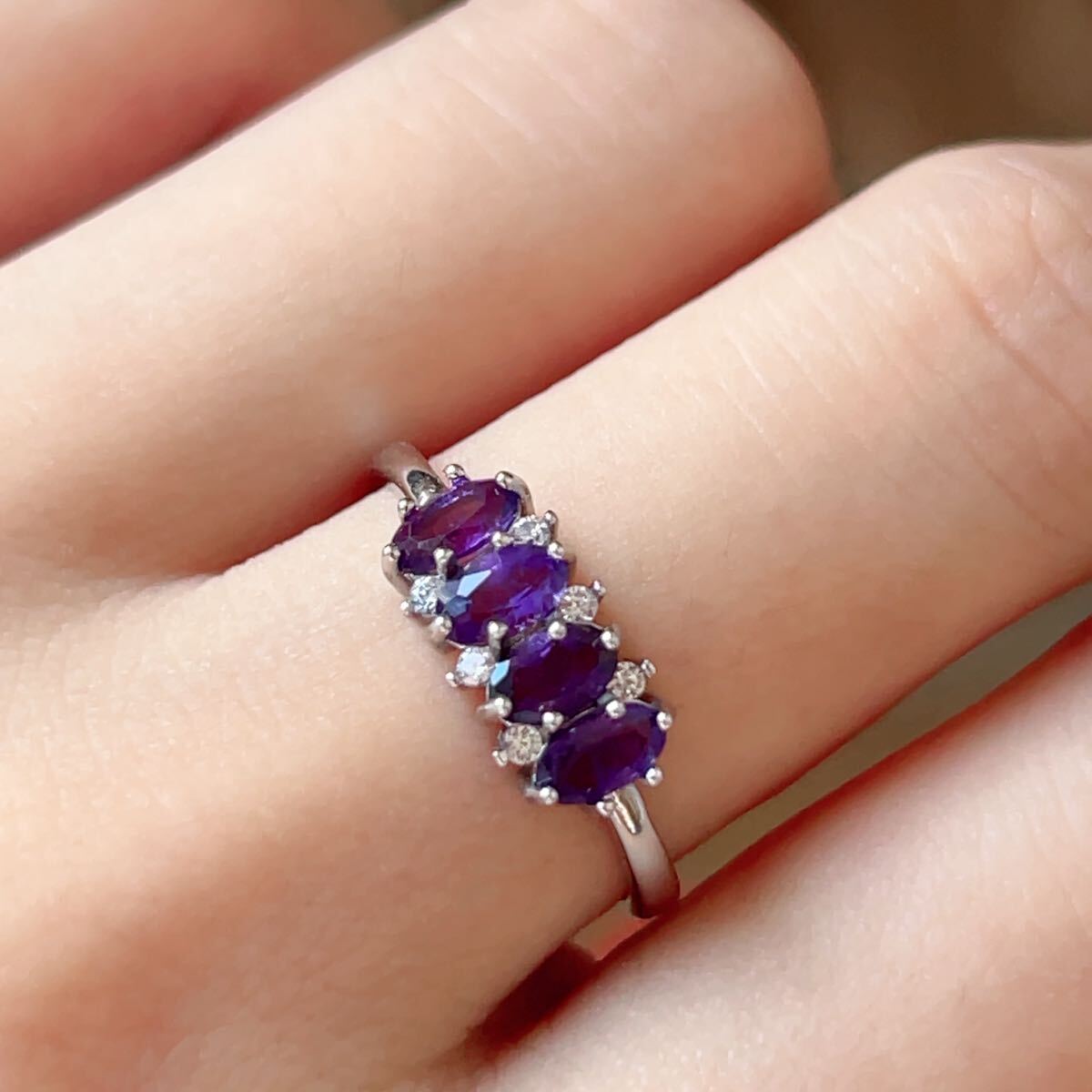 > ◇紫水晶◇色濃いめ◇アメジスト 銀 S925印字 ◇指輪◇フリーサイズ◇天然石◇パワーストーン◇巾着袋付き◇プレゼントにも040R10806