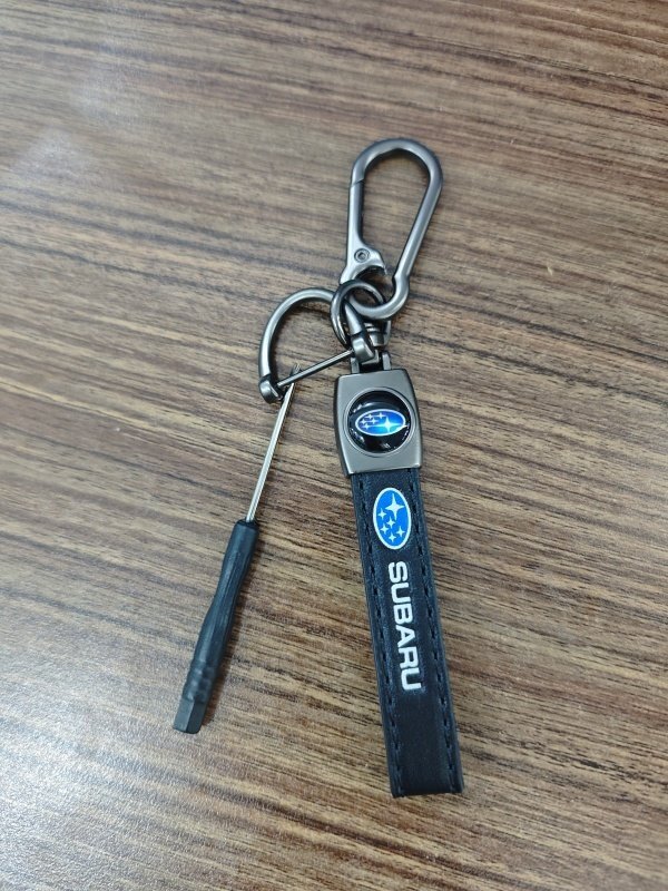 - スバル(SUBARU)車用 キーホルダー キーリング レザー ロゴ エンボス加工 アクセサリー カスタム パーツ 1P