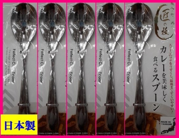 - 【送料無料:カレースプーン5本:日本製:18cm】★カレーを美味しく食べるスプーン:日本製:5個★匠の技:カトラリー :新潟県 燕三条