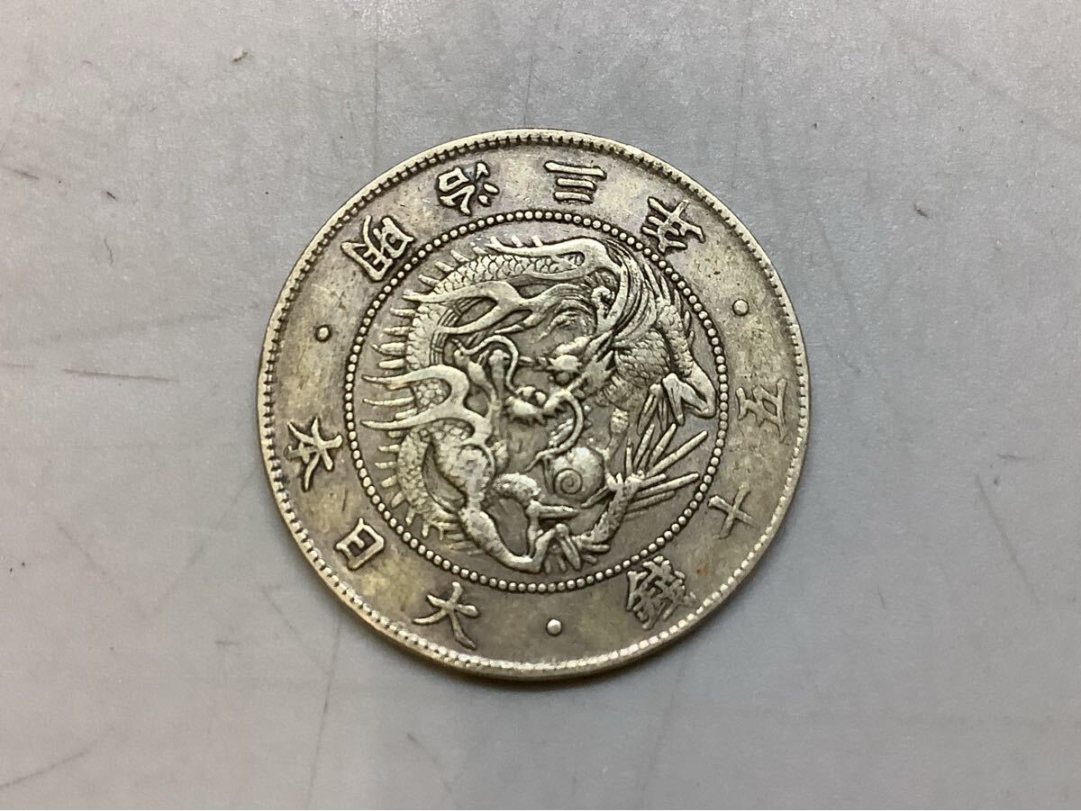 > N10 旭日竜大型50銭銀貨 特年 明治3年 五十銭 硬貨 50銭 大日本 明治三年 古銭 旭 竜 旧貨幣 日本硬貨 銀貨