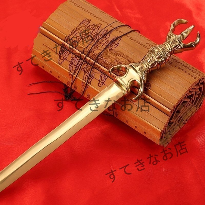 - 倶利迦羅不働剣 不動明王剣 三鈷剣 真鍮製磨き仕上げ 38cm