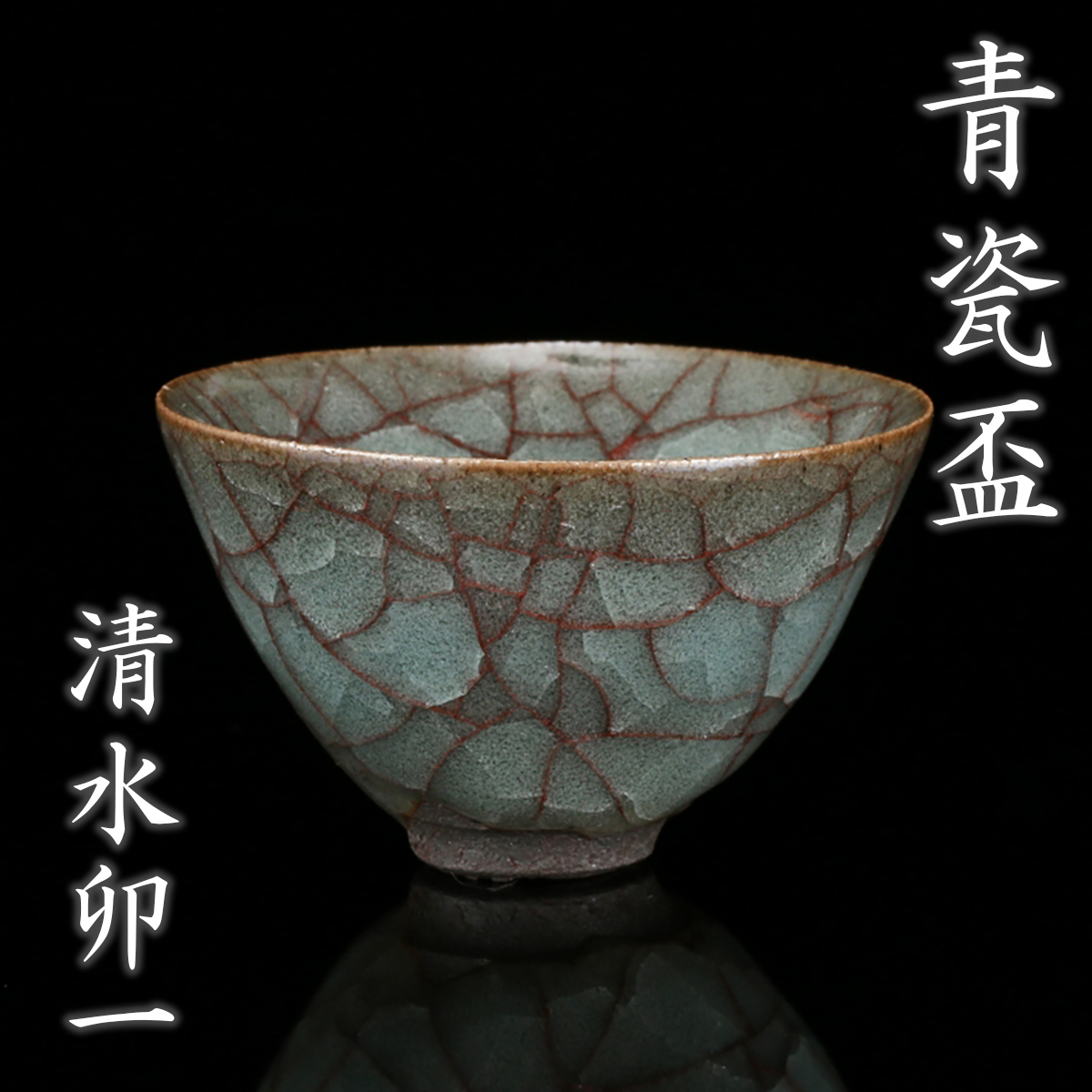 - 清水卯一『青瓷盃』最上位作 共箱 共布 栞 本物保証 送料無料 新品同様【松森美術】