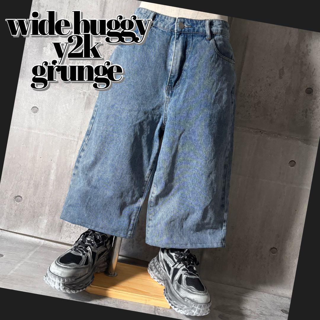 - y2k ワイドデニム ハーフパンツ ジョーツ 丈長 グランジ ショートパンツ