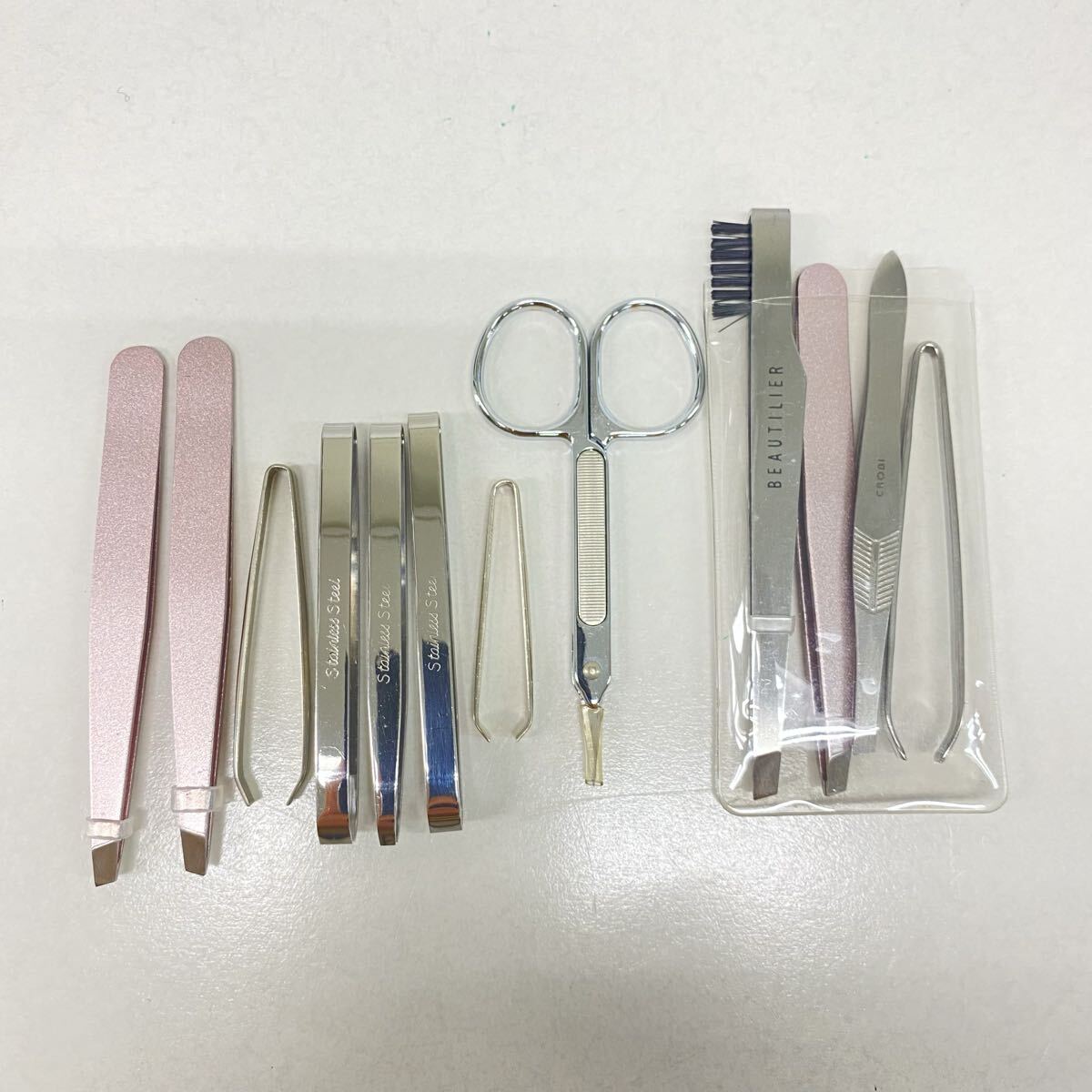 - 721 ピンセット 眉毛バサミ コスメツール ステンレス BEAUTILIER CROGI 12本 まとめて 化粧小物 毛抜き