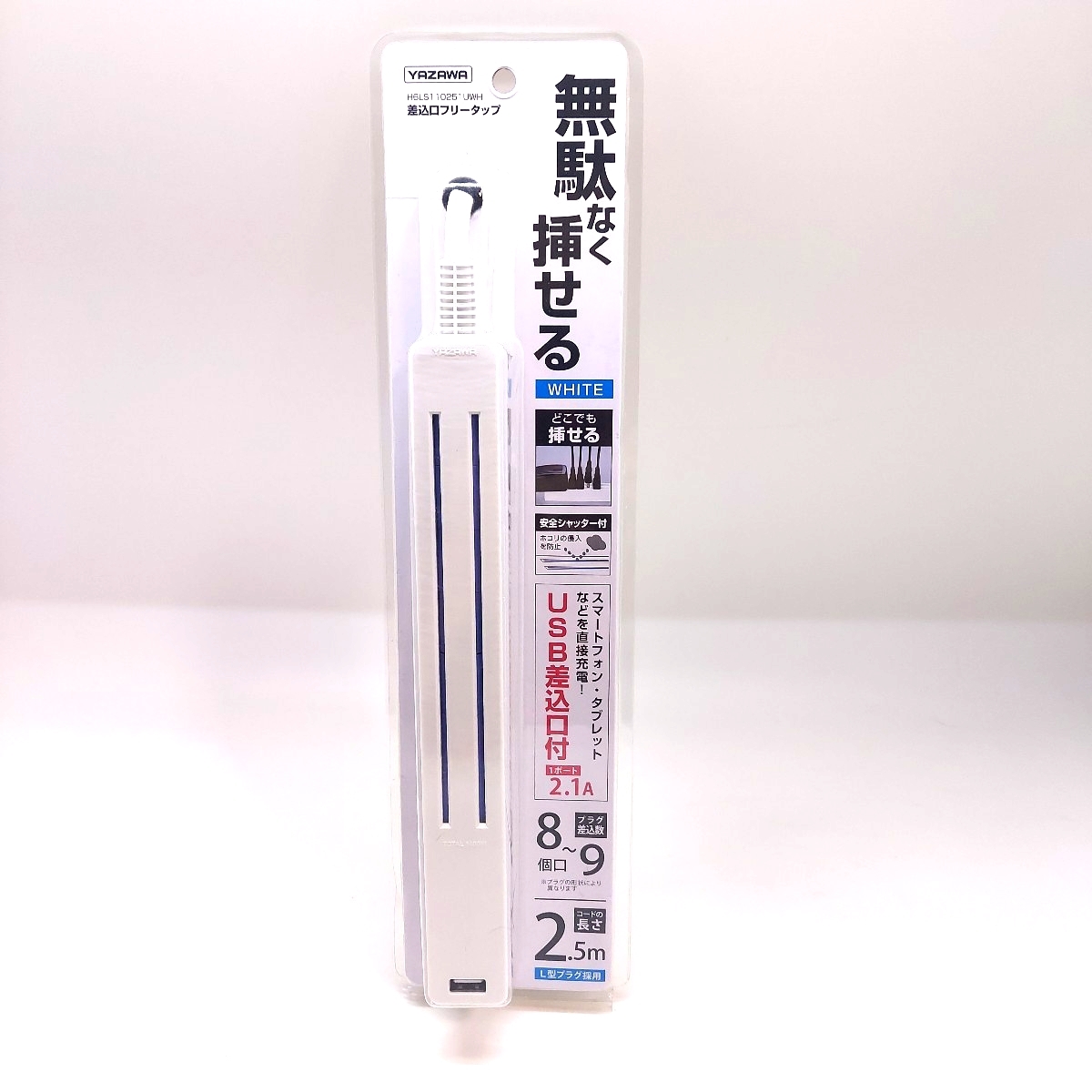 - YAZAWA 差込口フリータップ USBケーブルが直接挿せる 急速充電2.1A USB 1ポート付 ホワイト 延長コード ヤザワ H6LS110251UWH