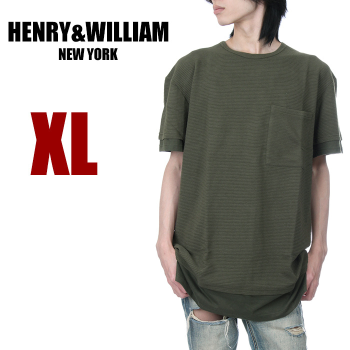 > 【新品】【USAモデル】HENRY&WILLIAM ロング丈 半袖 ポケット Tシャツ XL カーキ メンズ ポケT テレコ編み 無地 ブランド 大きいサイズ