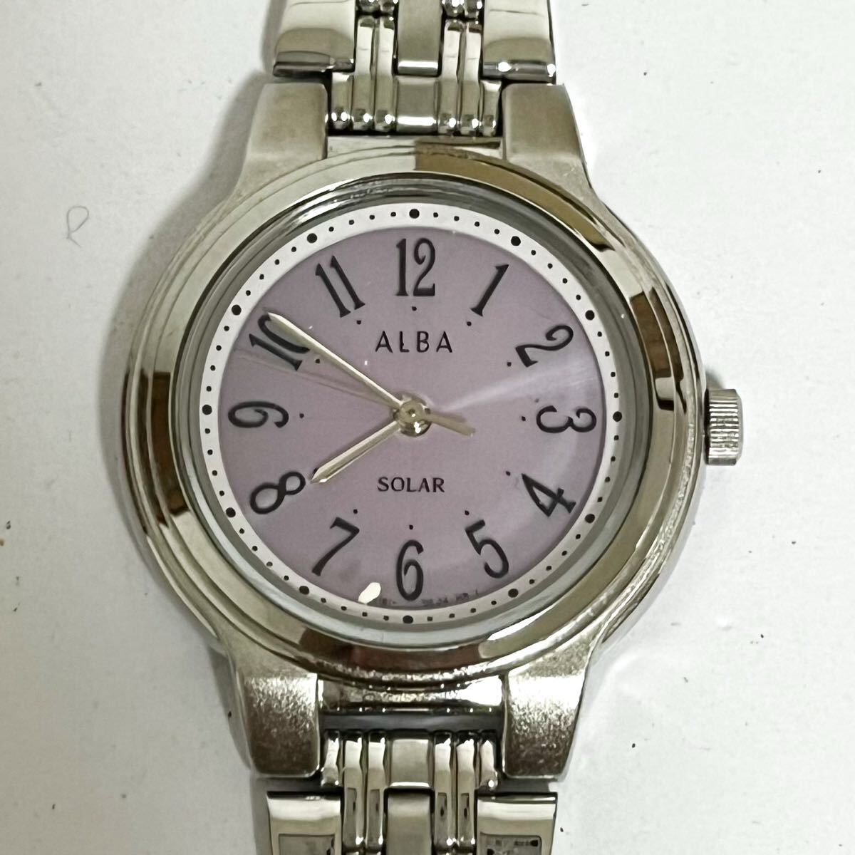 > 和854A★ SEIKO ALBA SOLAR V161-0AL0 142428 セイコー アルバ 腕時計 ウォッチ 3針 ダークパープル メタルバンド レディース