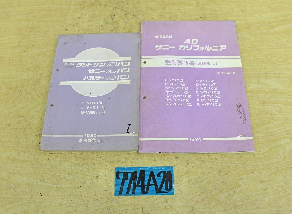 > 7714A20 NISSAN 日産自動車 整備要領書 バン/サニーカリフォルニア 1982年版/1994年版 ニッサン