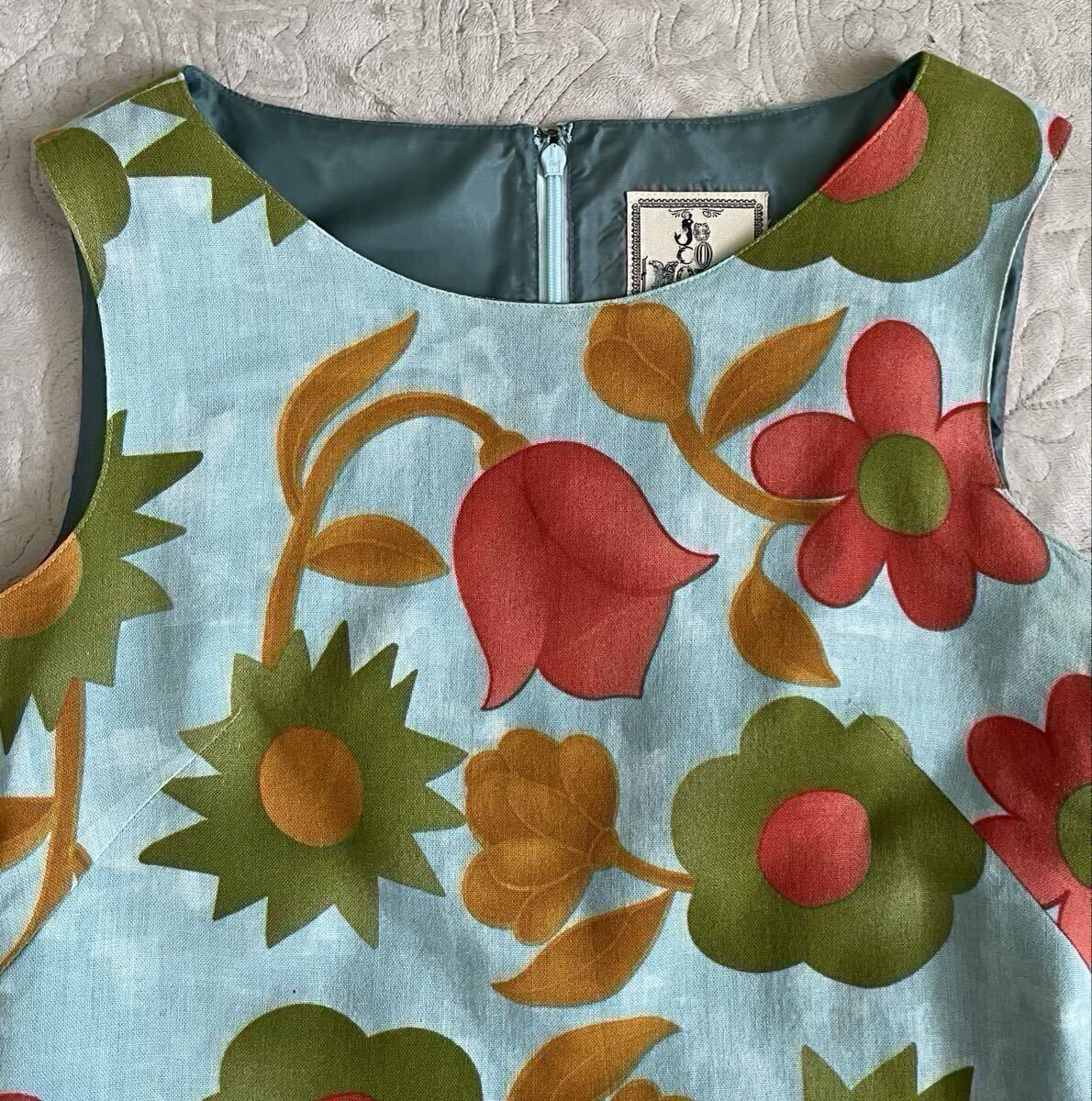 - ホコモモラ 花柄 ワンピース ノースリーブ 水色 緑 赤 むら染め レイヤード 綿100% コットン 膝下丈 40 シビラ