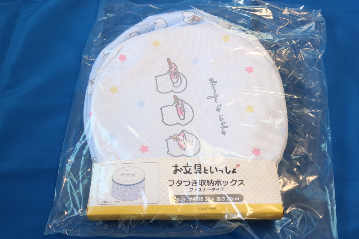 - お文具といっしょ ライトブルー フタ付き収納BOX 円形 お文具さん 新品 未使用