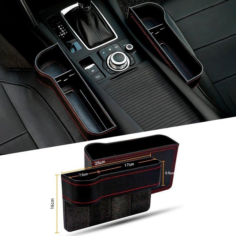 - 日産 NV350キャラバン 車のシート レザー 隙間ボックス 収納 左右2個 センター隙間埋め カップホルダー 落下防止 小物入れ 黒(赤糸)