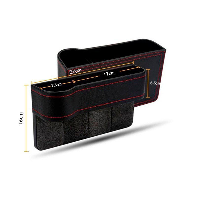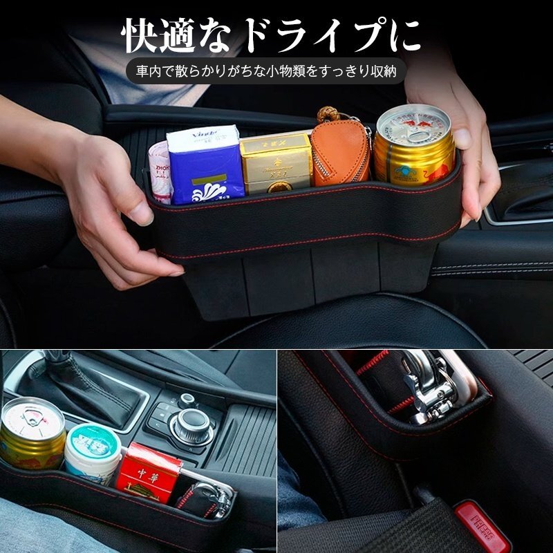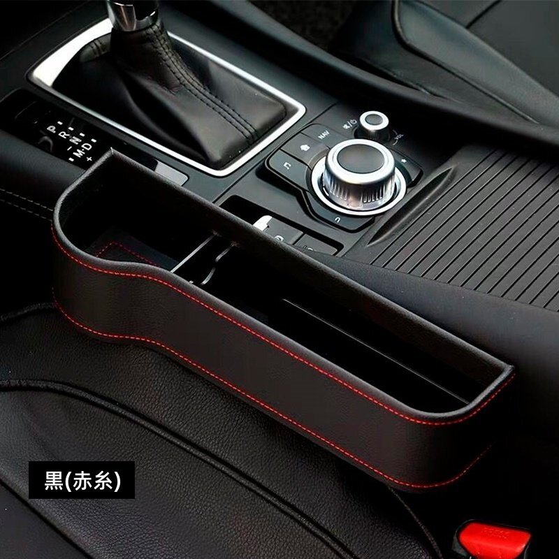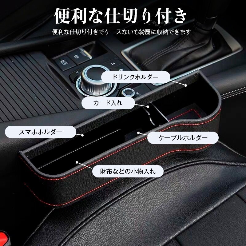 - ランドクルーザー200 車のシート レザー 隙間ボックス 収納 左右2個 センター隙間埋め カップホルダー 落下防止 小物入れ 黒(赤糸)
