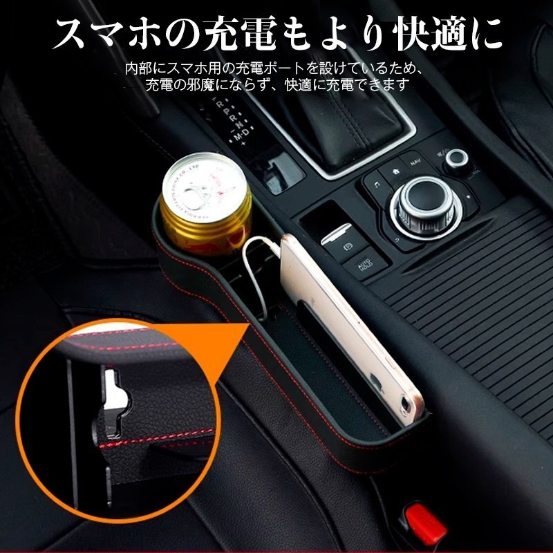 > ランドクルーザー200 車のシート レザー 隙間ボックス 収納 左右2個 センター隙間埋め カップホルダー 落下防止 小物入れ 黒(赤糸)