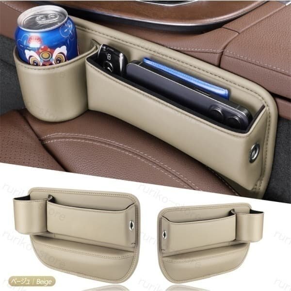 - プリウス 30系 前期 後期 車のシート 隙間ボックス左右2個 センター隙間埋め レザー 落下防止 小物入れ ベージュ
