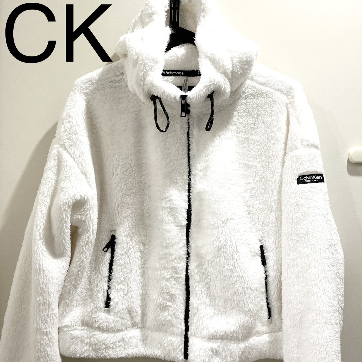 > ファーリー フリース ふわふわ もこもこ パーカー カルバンクライン CK スウェット 長袖 白 ホワイト ロゴ 新品 レディース ブランド