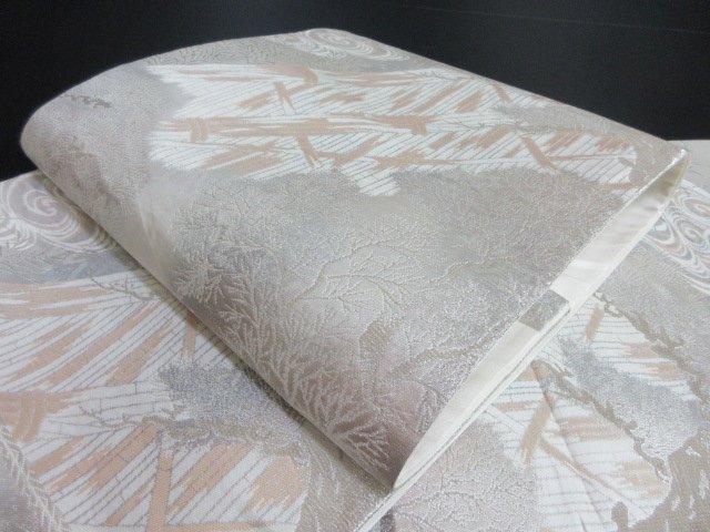- 1円 良品 袋帯 正絹 和装 和服 印箔 竹 立木 観世水 草花 お洒落 六通柄 長さ422cm【夢職】★
