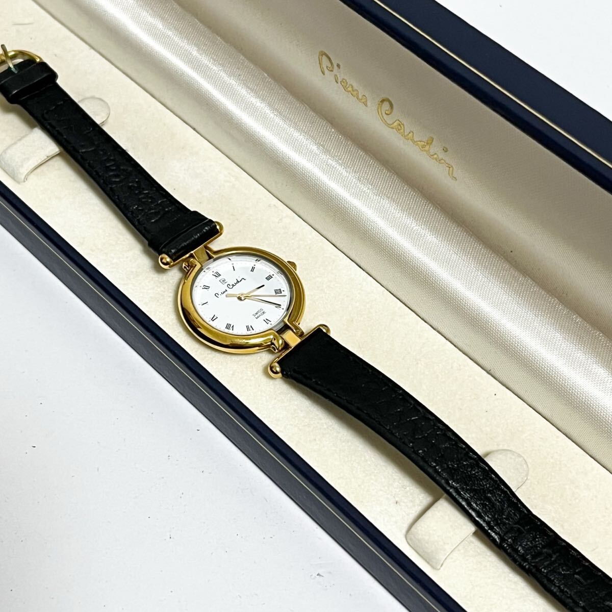 - 和854★ 箱付き Pierre Cardin STU-LRO-1-4 ピエールカルダン クォーツ 腕時計 ウォッチ 3針 ホワイト レザーバンド レディース