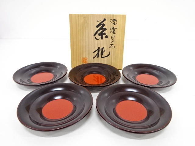 - 作家物 溜塗 茶托 5客揃 (AJI1DHP-043)