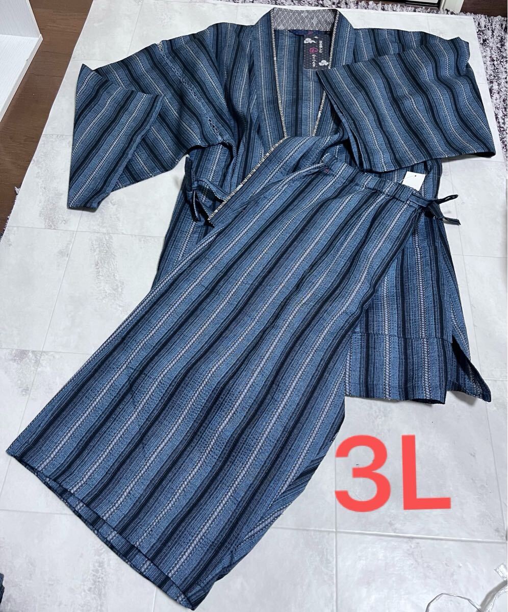 - 新品 和柄 和風 ドライ 甚平 ルームウェア 3Lサイズ 大きいサイズ 紳士甚平 ブルー 甚平