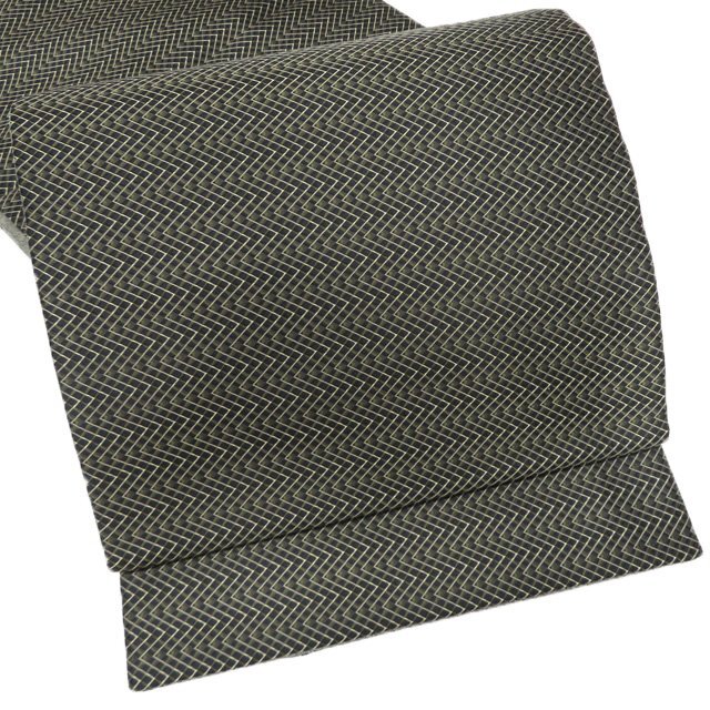 > 袋帯 中古 リサイクル 正絹 カジュアル 仕立て上がり ジグザグ模様 全通 黒色 海松色 きもの北條 A1284-14