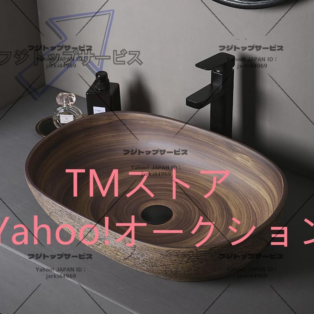 - 洗面ボウル 陶器 豪華 手洗器 シンプル 置き型 洗面器 深型 蛇口付き (58*40*13CM)