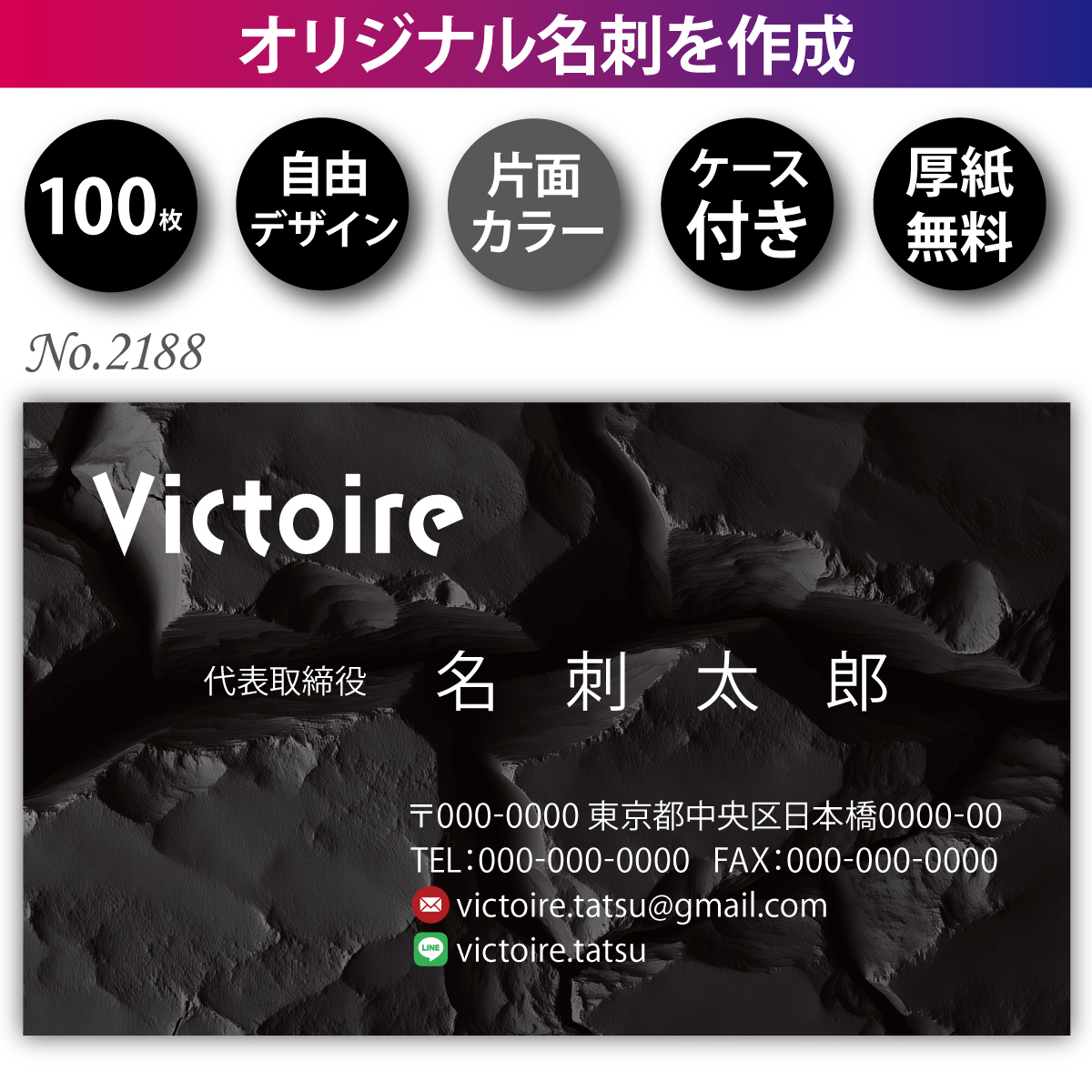 - 名刺 名刺作成 名刺印刷 100枚 片面 フルカラー 紙ケース付 No.2188