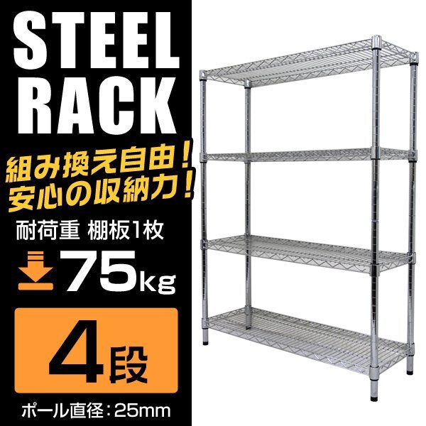 - 新品未使用 スチールラック 4段 耐荷重300kg 90×30×120cm メタル製 シェルフ ラック シンプル おすすめ 収納 オープンラック 組立簡単