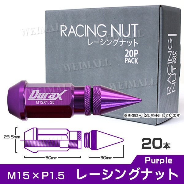 > Durax正規品 アルミ製 ホイールナット P1.5 スパイクナット 紫 20個 アルミ ホイール ナット トヨタ 三菱 ホンダ マツダ いすゞ ダイハツ