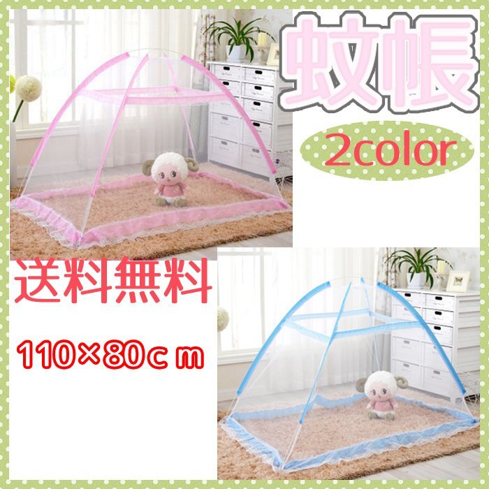 - 送料無料 ベビー用蚊帳(レースタイプ) 選べるカラー ピンク,ブルー 出産祝い ベビーベッド ワンタッチ コンパクトタイプ 軽量 ベビー蚊帳