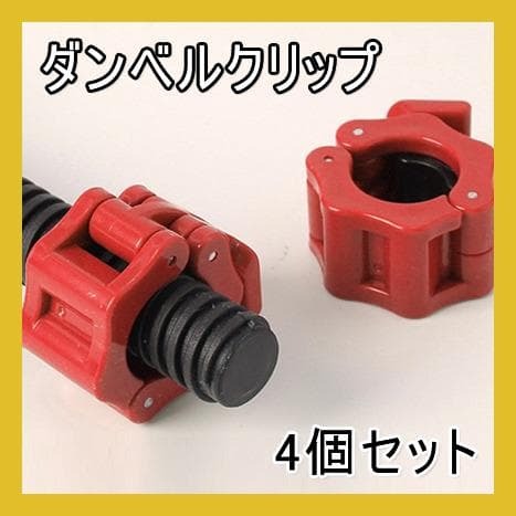 - ダンベル クリップ ロック バーベル プレート シャフト 4個セット 赤 レッド