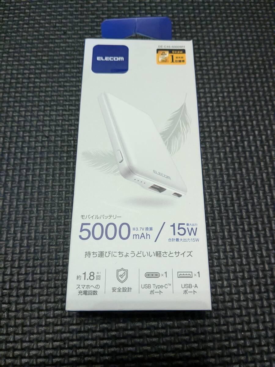 - ◎0710u0949 エレコム モバイルバッテリー 軽量 小型 薄型 5000mAh 15W 5V 3A Type-C USB-A ケーブル付属 ホワイト DE-C45-5000WH