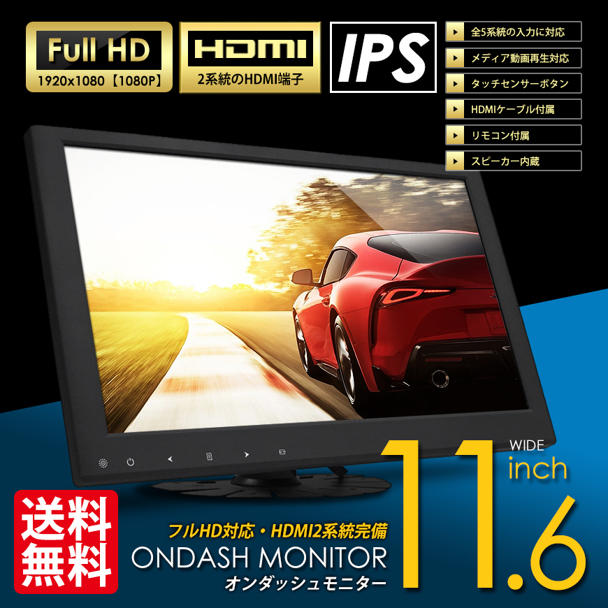 - 画質の差歴然 超高画質 オンダッシュモニター/11.6インチ/フルHD/IPS液晶/HDMI2系統搭載/HDMIケーブル付/国内検査後出荷 宅配便 送料無料
