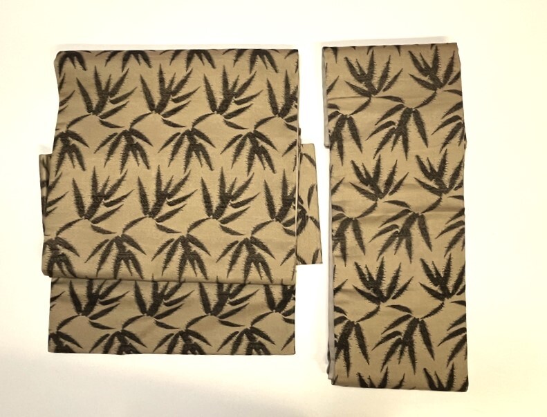 - 花とら●リサイクル帯 作り帯 付け帯 笹 織 薄茶 250920