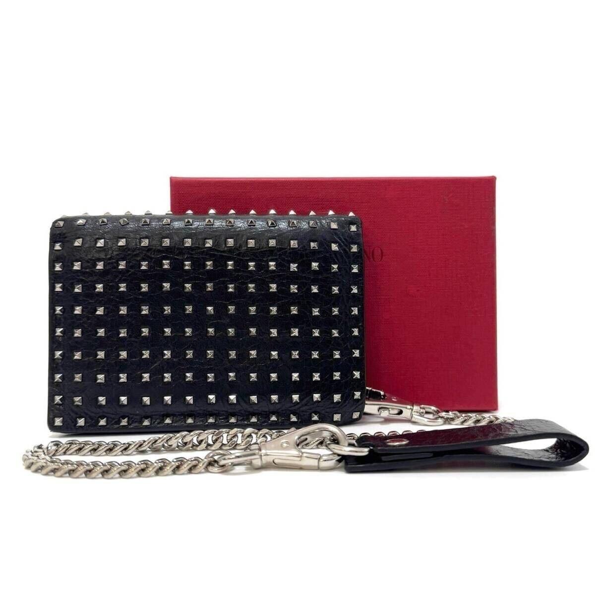 - ヴァレンティノ ガラヴァーニ 二つ折り財布 コンパクトウォレット ブラック 黒 シルバー レザー 本革 スタッズ チェーン VALENTINOGARAVANI