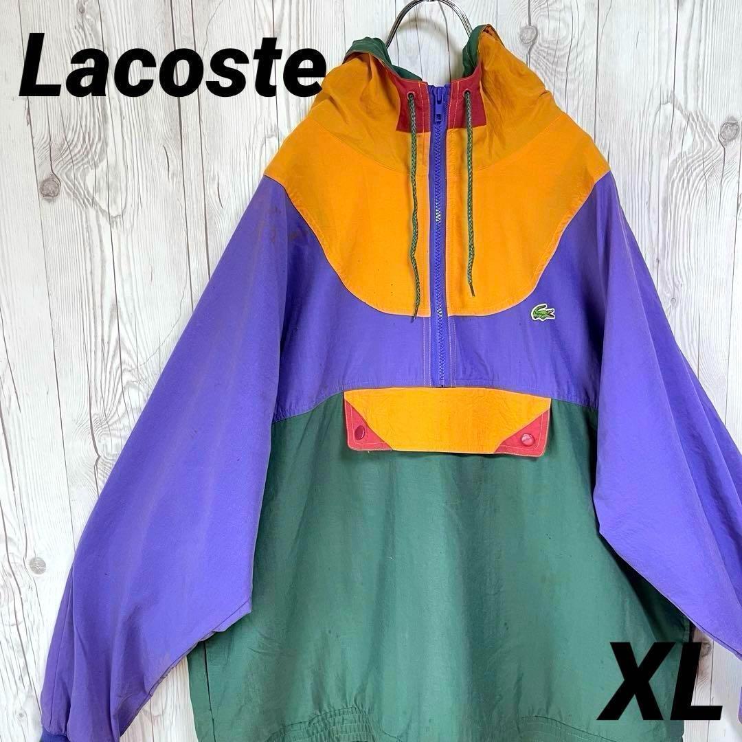 > Lacoste ラコステ フーディハーフジップナイロンパーカー メンズXLサイズ マルチカラー 紫 緑 黄色 パープル グリーン イエロー