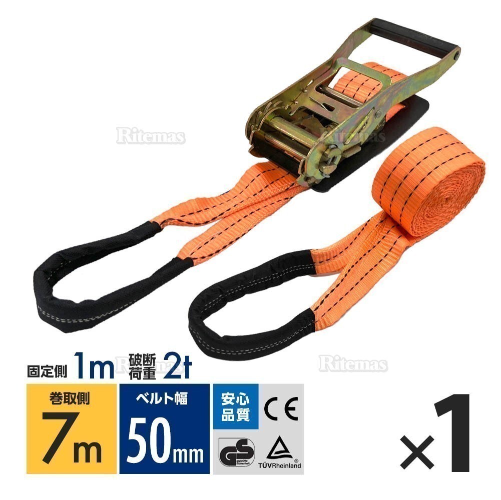 > ラッシングベルト ワッカ トラック用 幅 50mm ラチェットベルト ラチェット式 固定側1m 巻側7m 荷重2000k タイダウンベルト 1本 1年保証