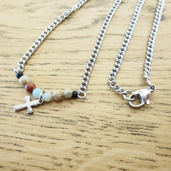 - スネークスキンジャスパー ミニクロスネックレス 全長約45cm BN47