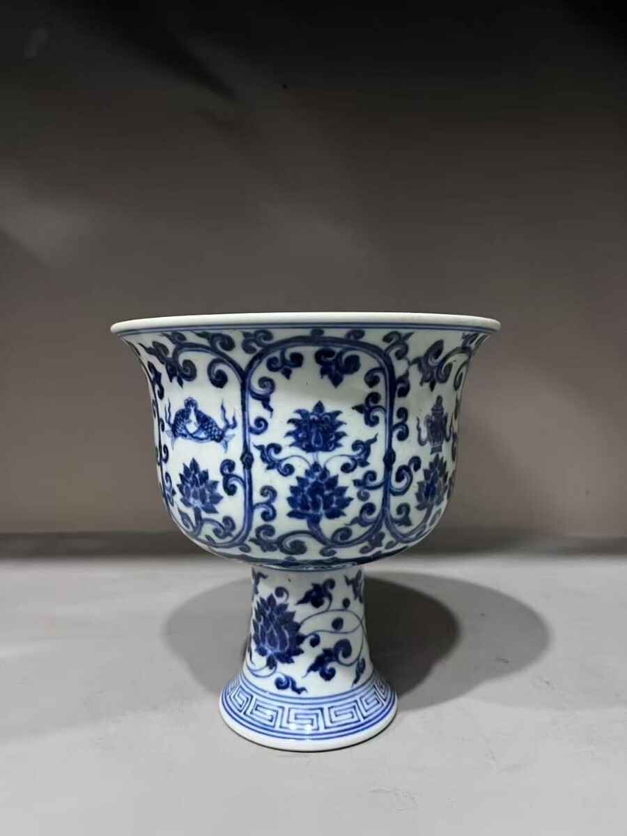 - 【積古】中国古美術 明時代 青花 高足 茶碗 古玩 骨董 美術品 骨董品 時代物 古美術 唐物 当時物 置物 li12
