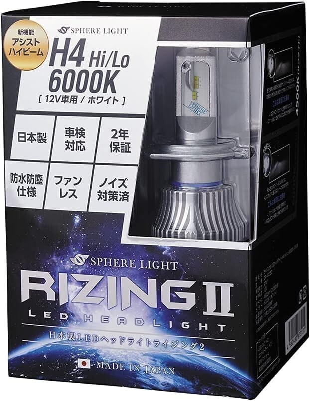 - 2年保証 スフィアライト RIZING2 H4 Hi/Lo 12V用 6000K 4800lm 製品寿命50000時間 日本製 LED ヘッドライト ライジング2 SRH4A060