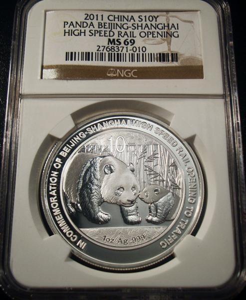 - ●中国 2011年 NGC MS69 高速鉄道京滬線開通記念 パンダ10元銀貨 ★レアパンダ