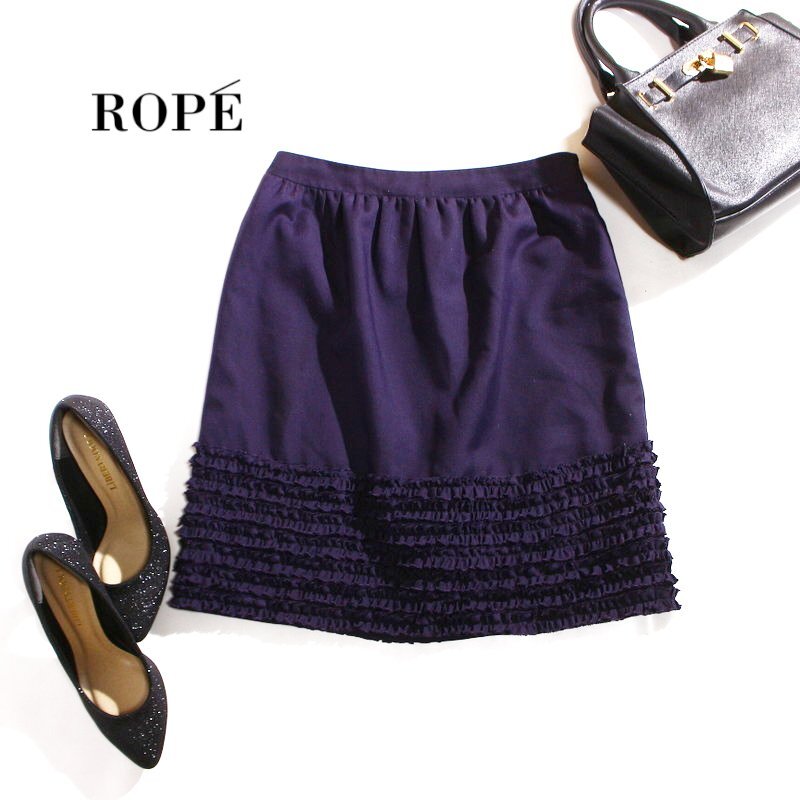 > ROPE’ ロペ 上品 ポリエステル 裾フリル デザイン スカート 9号 パープル 紫 ミセス 綺麗め フォーマル セミフォーマル