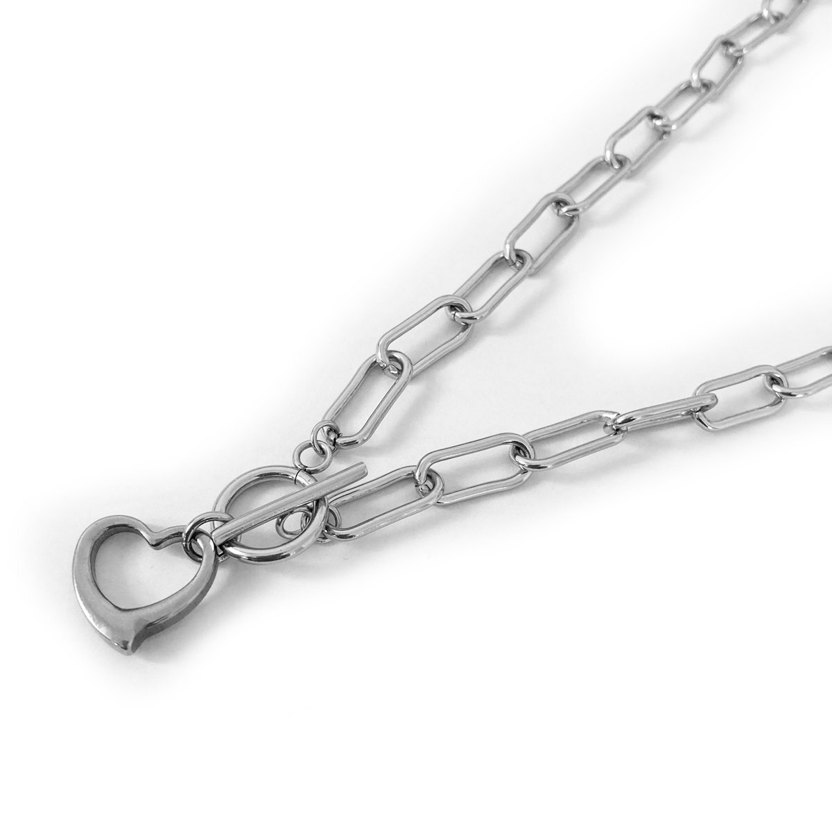 - ステンレス製 ハートチャームマンテルネックレスチョーカー ロング小豆チェーン 幅約7.5mm 38cm MN02