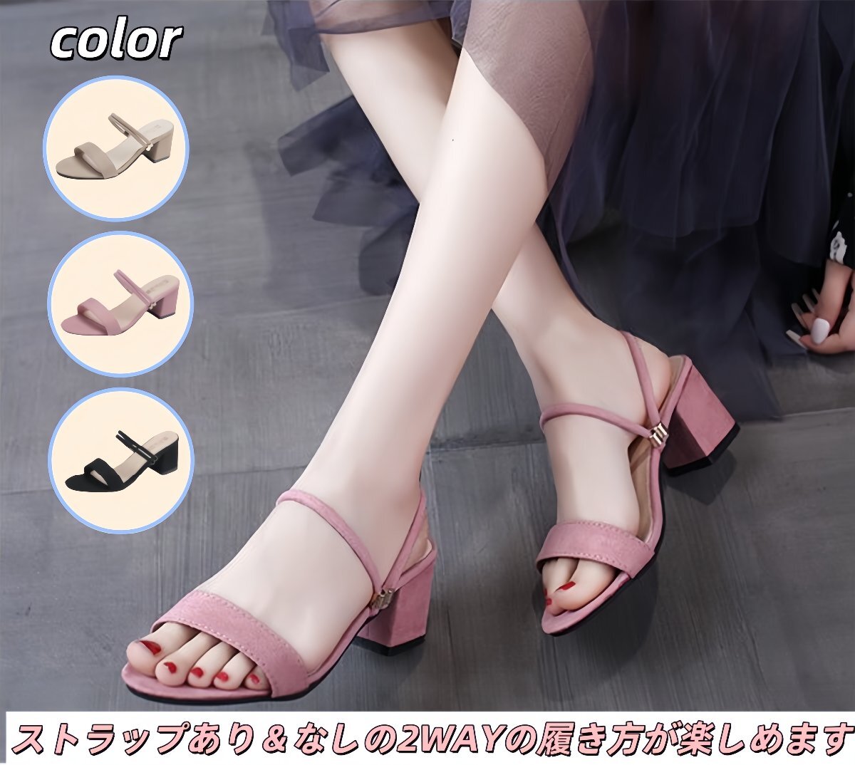 - 新作 ミュール 美脚効果抜群!スエード素材 ローヒール シューズ ストラップあり&なしの2WAYで楽しめる履き方