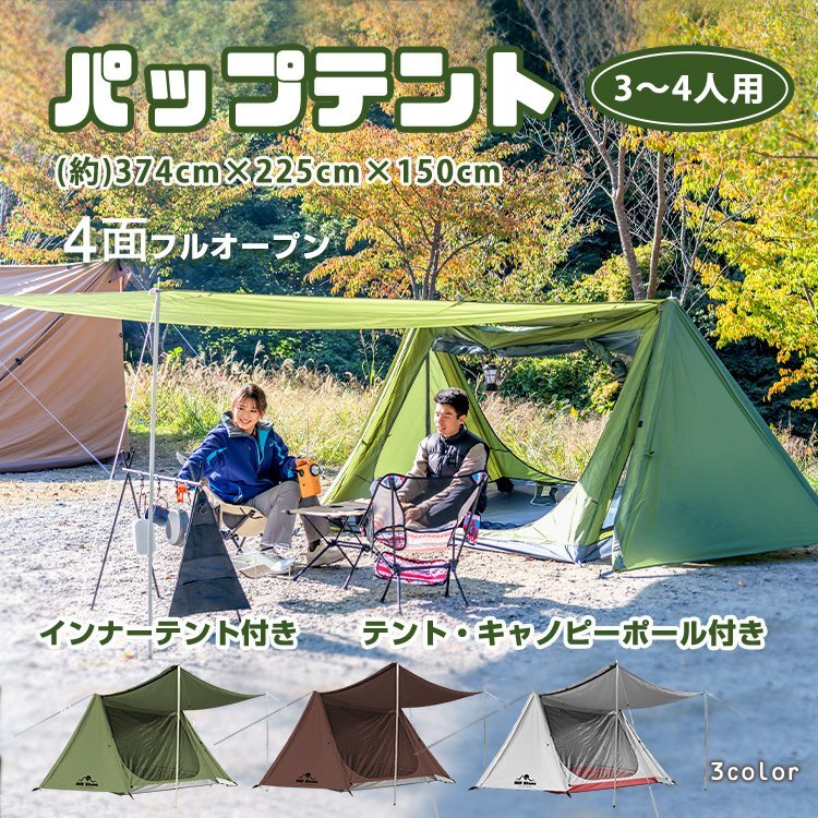- 送料無料 テント 2ポール パップテント ミリタリー キャンプ アウトドア 3人用 4人用 防水 タープ イベント インナーテント付 od532-gr